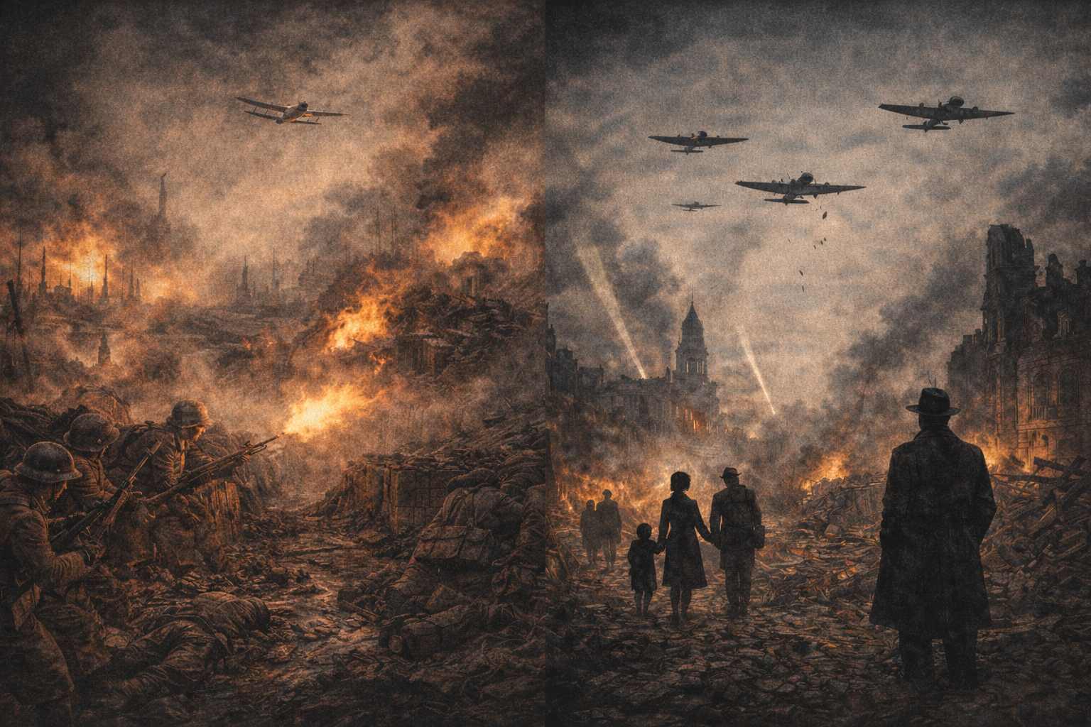 1차·2차 세계대전에서 결정적인 변화는 전쟁이 총력전이 되었다는 점입니다.
