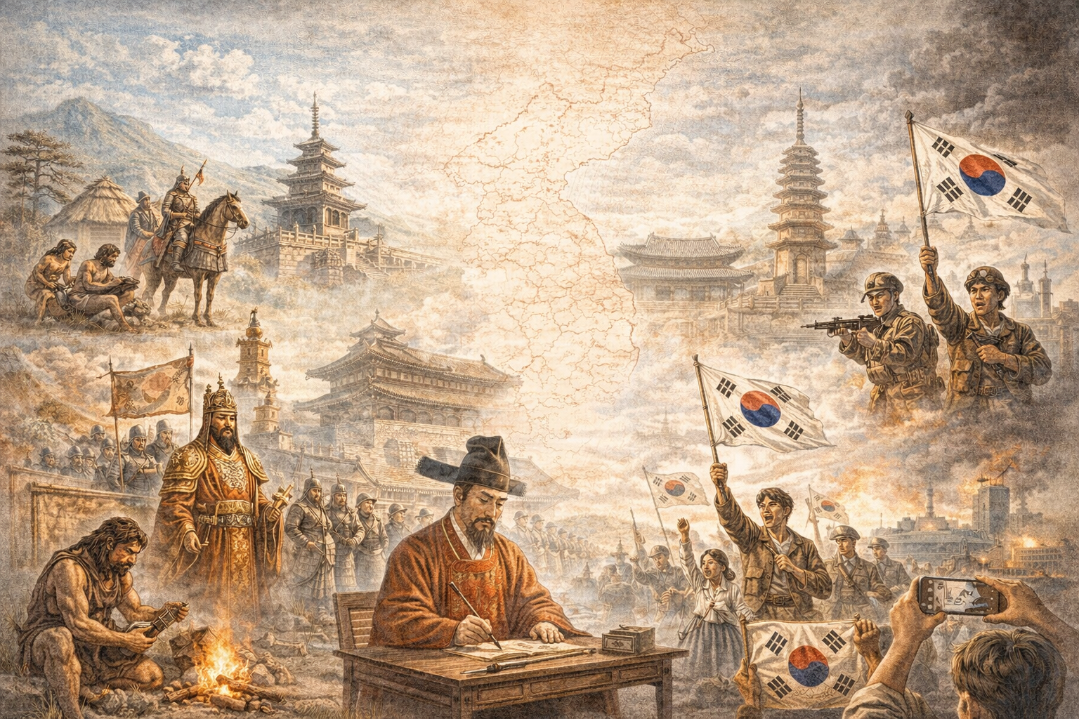 한국사는 “왕 이름과 연도 암기”로 접근하면 금방 지치기 쉽습니다. 대신 **큰 흐름(국가 형성 → 제도 정착 → 외교·전쟁의 충격 → 사회 구조 변화 → 근대 전환 → 분단과 산업화·민주화)**을 잡으면, 세부 사건이 자연스럽게 연결됩니다. 이 글은 선사부터 현대까지를 전환점 중심으로 정리해, 한 번 읽고 나면 다음 글(삼국/고려/조선/근현대)을 따로 읽을 때도 길을 잃지 않도록 구성했습니다.