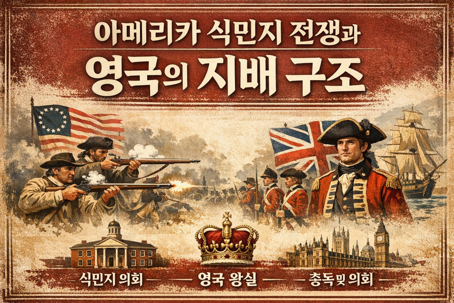 아메리카 식민지의 전쟁은 ‘전투’보다 먼저 ‘지배 구조’에서 시작됐습니다. 영국은 전쟁을 치르고, 전쟁 비용을 회수하기 위해 식민지를 촘촘한 규칙과 세금으로 묶었습니다. 그 구조가 누적되며, 결국 독립전쟁으로 이어지는 ‘불만의 자동화’가 완성됐다고 볼 수 있어요.